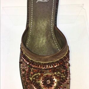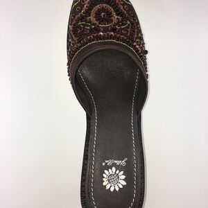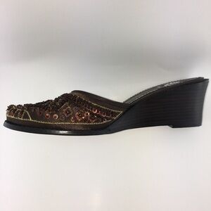 Yellow Box Kinzy Brown Beaded Slip On Wedge Mules Size 9. Condition is New with box. From smoke free home.