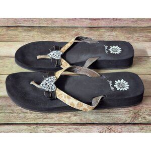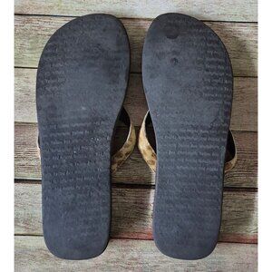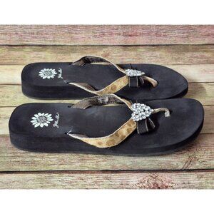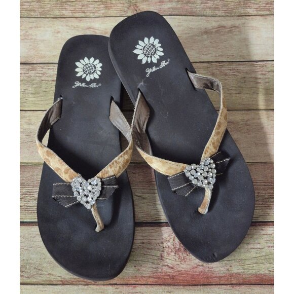 Yellow Box Leather Cowhide Cheetah Print Flip Flops Size 9 Heart & Bow Comfort
