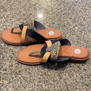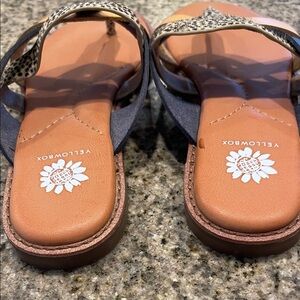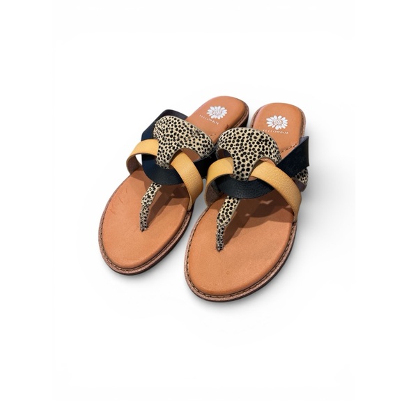 Chic Yellowbox sandals with leopard print, yellow/gold and black straps size 8. These are in excellent condition!