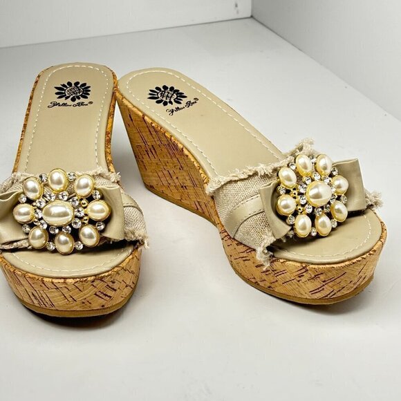 Yellow Box Maryland Beige Fringed Rhinestones Faux Pearls Cluster Sandals Size 7