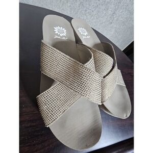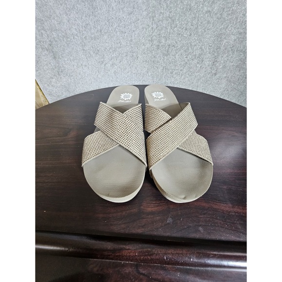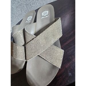 Yellow Box Maxima Slip On Sandals Flip Flops Womens Size 9.5 Leather Rhinestone