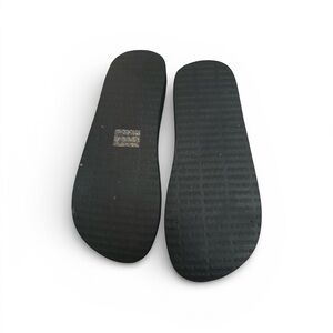 Stylish flip flops featuring a red and white chevron pattern. Comfortable black soles with a unique design.These sandles have little or no wear . The issue is the middle part that has the name of the Sandler the brown part is peeling off . The straps are clean and are in excellent condition.