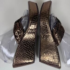 Yellow Box Riviera Women’s Bronze Wedges Sandals Snake Glams Boho Resort sz 8.5