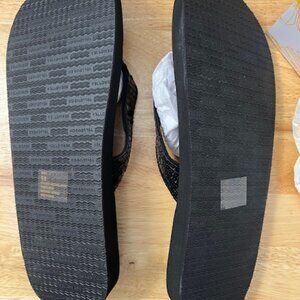 Yellow Box Sandy Sandals Flip-Flops Black Sequin NIB Size 11