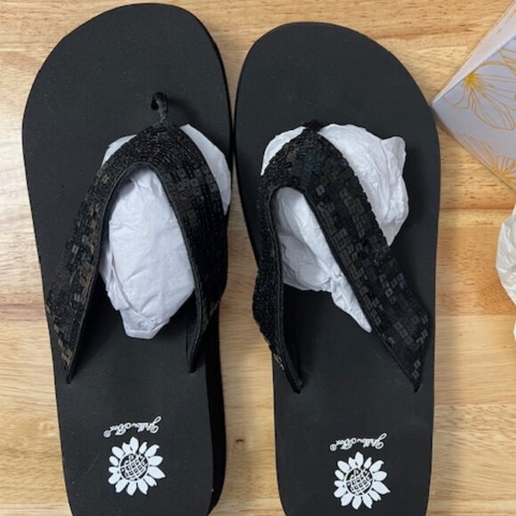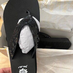 Yellow Box Sandy Sandals Flip-Flops Black Sequin NIB Size 11