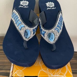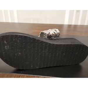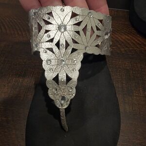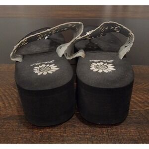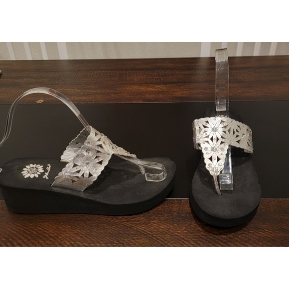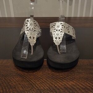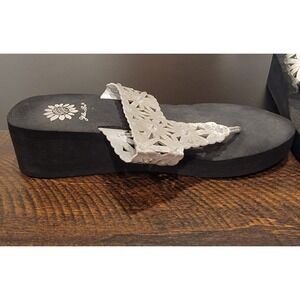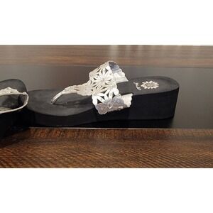 Yellow Box Silver Rhinestones Perforated Flowers Flip Flops Wedge Sandals sz 7