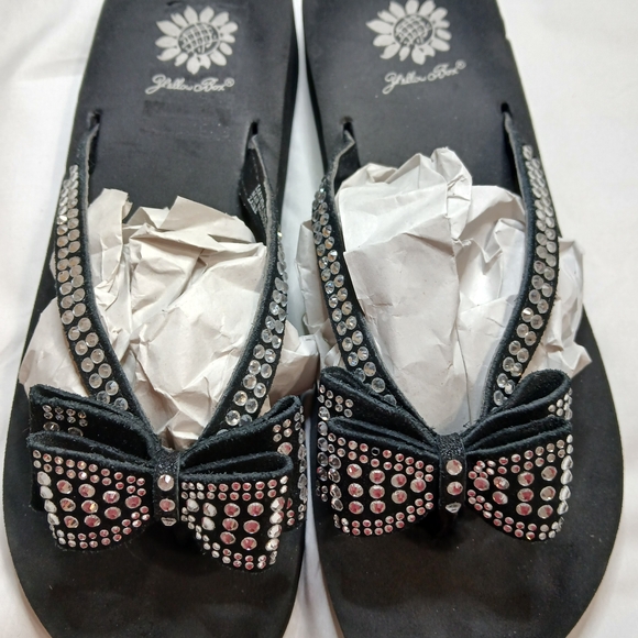 Yellow Box Sparkly Black Bow Sandals