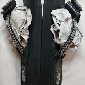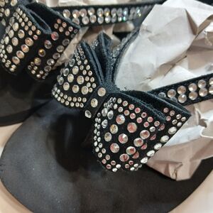 Step out in style with these elegant black sandals featuring a sparkling bow design. Perfect for any occasion.