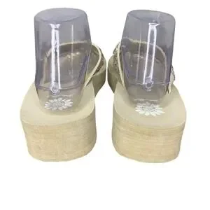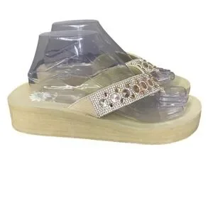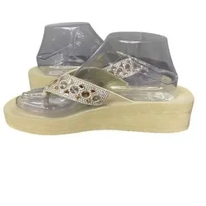 Yellow Box Tan Rhinestone Gem Embellished Wedge Platform Flip Flops Women Size 9