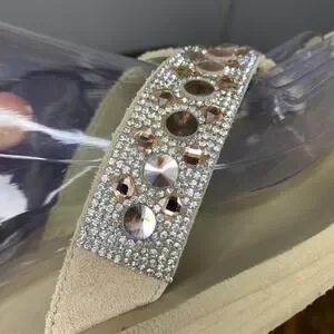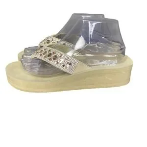 Keywords: Y2K, Bling, Sparkly, Platform Sandals, Wedge Flip Flops, Beach Glam, Resortwear, Embellished, Rhinestone, Summer Style, Neutral, Comfortable Height