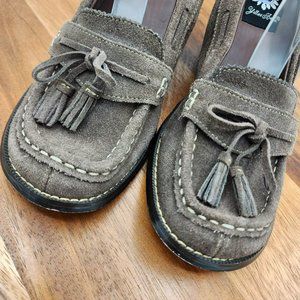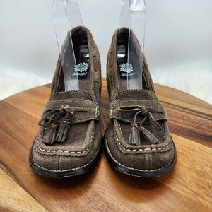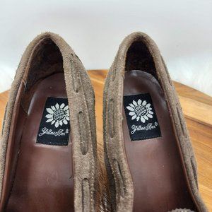 Yellow Box Tiger Loafers 7.5 Chocolate Brown Suede Leather Stacked Wedge 90s Y2K