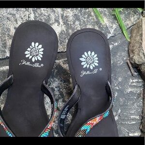 Yellow Box Tribe Turquoise Brown Orange Beaded 2” Wedge Sandal’s Size 7 …