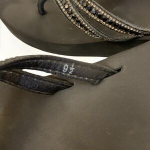 Keywords: Yellow Box, wedge sandals, rhinestone sandals, thong sandals, black sandals, size 9.5, women's sandals, summer footwear, casual sandals, embellished sandals, sparkly sandals, beach sandals, bohemian sandals, comfortable sandals
