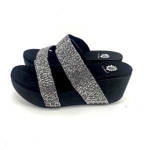 Yellow Box Wedge Sandals Silver Beaded Embellished Two Strap Slides Segrid 7.5