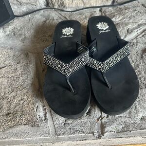 Yellow Box Wedge Thong Sandals – Size 8.5 – Sparkly Strap – Barely Worn