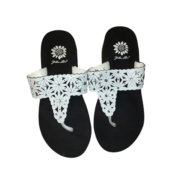 Stylish white sandals with intricate cut-out design. Comfortable and chic for everyday wear.