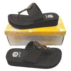 Yellow Box ~Woman 8.5 M~ Brown Flip Flops Wedge Jeweled Sandals 30189 NEW.