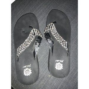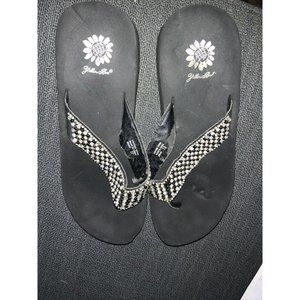 Yellow Box Woman’s 7.5 m Silver Rhinestone /Black Beaded Wedge Sandals Pre-Owned