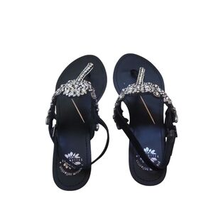 Yellow Box Women's Black P-Vallen Embellished Thong Sandal Shoe Size 9