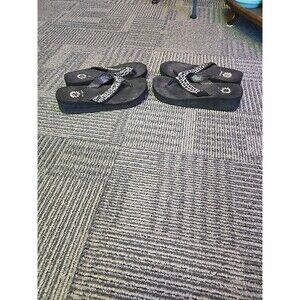 Yellow Box Women's Flip Flops Thong Sandals Black Rhinestone Embellished 2 pair