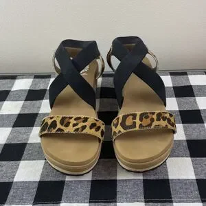 Yellow Box Women’s Janalee Criss Cross Animal Print Wedge Sandal Size 8