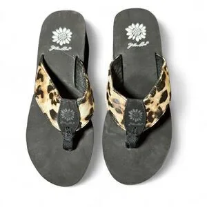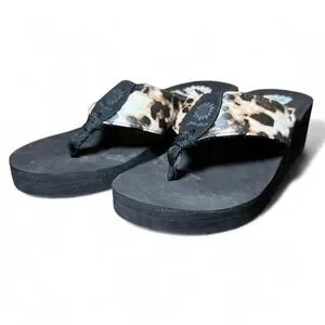 Yellow Box Women's Leopard Print Y2K Wedge Heel Flipflops Size 8