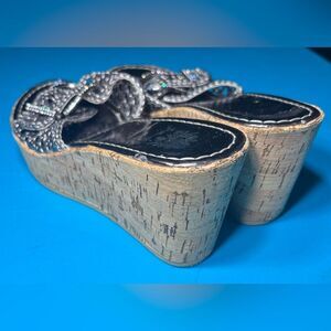 Yellow Box Braided Metallic Rhinestone Buckle Cork Wedge Sandals Size 8 EPC