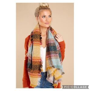 Yellow Brown Multi Knit Blanket Scarf Plaid