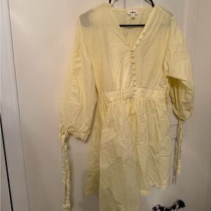Chic yellow dress with button-down front and tie sleeves. Perfect for casual outings.