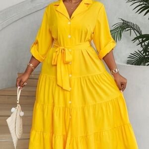 Brighten your wardrobe with this stunning yellow mini dress. Perfect for any occasion, it features a button-down front and a flattering tie waist.
