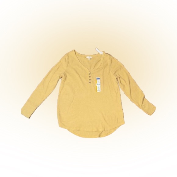 Cozy yellow sweater with button-front detail. Perfect for layering. Smoke free & pet free home.