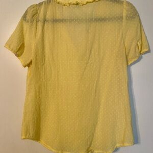 Brighten your wardrobe with this charming yellow button-up top. Featuring delicate ruffles and a soft fabric, it's perfect for any occasion.