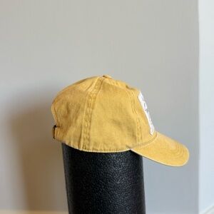 Bright yellow cap featuring 'grateful thankful blessed' embroidery. Perfect for casual outings.