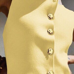 Yellow Casual Women's Metal Button Open Front Sleeveless Jacket