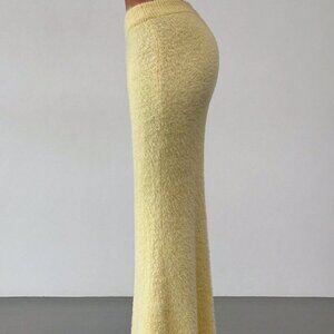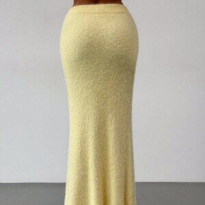 Yellow Casual Womens Oversized Long Sleeve Cardigan and Sweater Maxi Skirt set