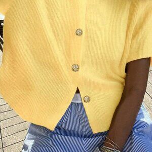 Yellow Casual Women's Plus Size Loose Knitted Short Slouchy Cardigan Top
