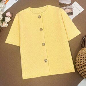 Yellow Casual Women's Plus Size Loose Knitted Short Slouchy Cardigan Top