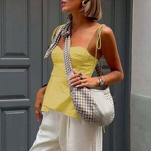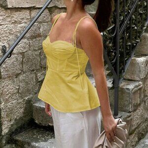 Yellow Casual Womens Sleeveless Ruffled Hem Top
