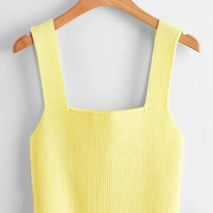 Yellow Casual Women's Solid Ribbed Knit Top