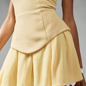 Yellow Casual Women's Strapless Crepe Chiffon A-Line Cocktail Mini Dress