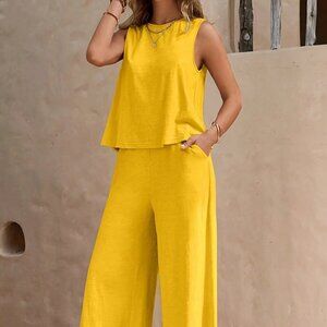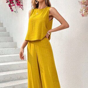 Yellow Casual Women's Summer Sleeveless Vest And Wide-Leg Pants Two Piece Set