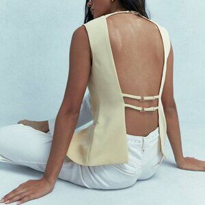 Yellow Casual Women's Tailored Buttoned Sleeveless Backless Jacket
