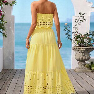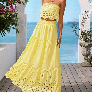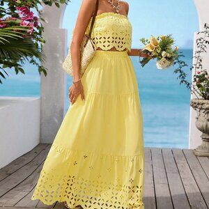 Yellow Casual Women's Tube Top & Long Maxi Skirt Two Pieces Set