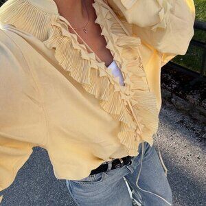 Yellow Casual Women's V-Neck Long Sleeve Blouse with Lace-Up Details