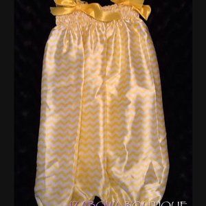 This beautifully made and detailed Yellow Chevron Bubble Romper (looks like pants) is accented with double satin bow is perfect for your little princess.