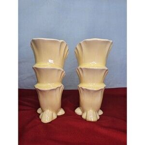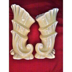 Yellow Cornucopia Vase Set VTG Shell USA Cal American Art Pottery #675 Fluted