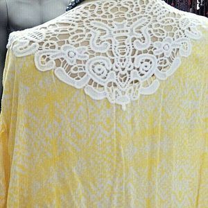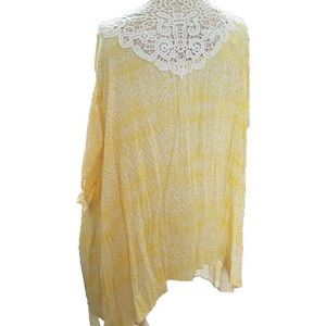 Yellow Coverup OS Lace Back Faux Front Tie Over Sized Boho Lagenlook