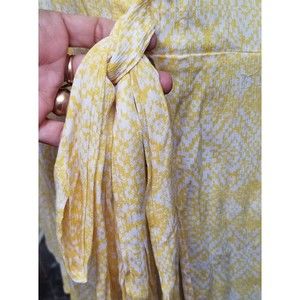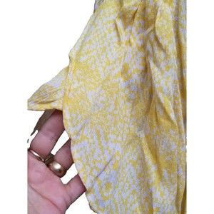 Add a touch of bohemian to your wardrobe with this yellow coverup blouse. The blouse features a V-neckline with short flutter sleeves and a relaxed fit that flatters all body types. The blouse is made of woven rayon material that gives it a lightweight and comfortable feel, perfect for casual occasions in the summer, spring, and fall seasons.
