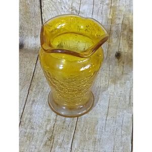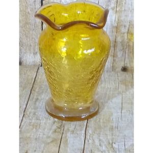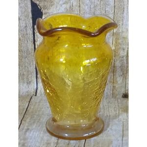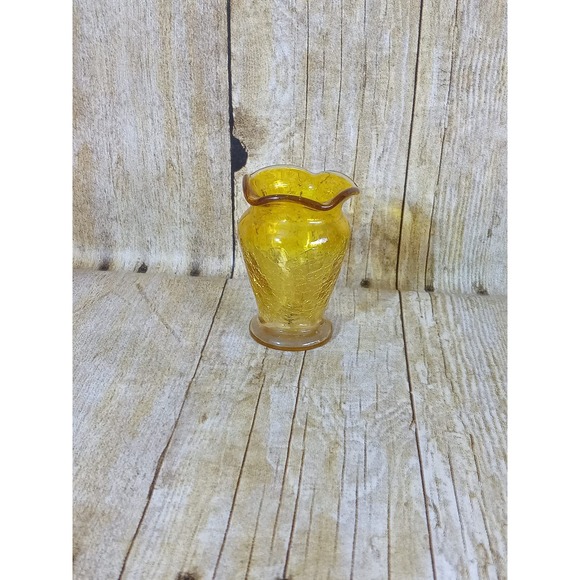 Yellow Crackle Glass Bud Vase Miniature Succulent Air Plants Planter 3.5" Very clean NO chips