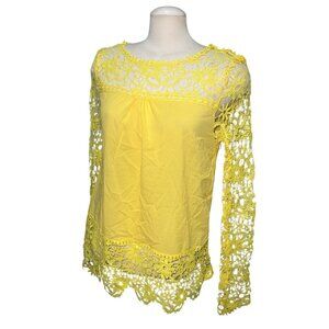 Yellow Crochet Lace Long Sleeve Blouse Top Size Large Lightweight Boho Chic Flor